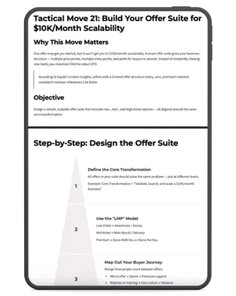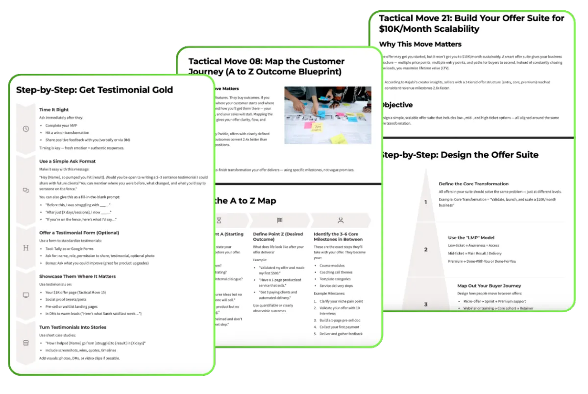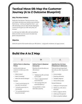 Scaling Blueprint & Monetization Map: Once you’ve launched and validated, this roadmap shows you how to build on momentum, boost conversions, and scale your offer.