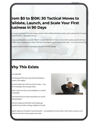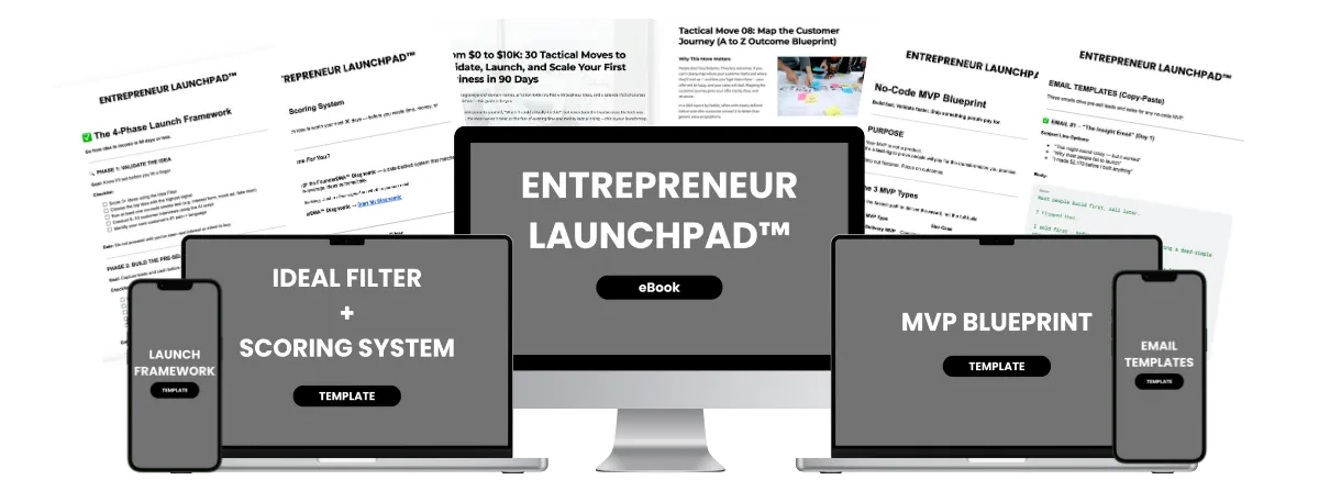The Launchpad Operating System: Complete, ready-to-run workspace packed with plug-and-play tools: Notion dashboards, step-by-step validation flows, idea scoring systems, and funnel builders — all designed to get you from idea to income, fast.