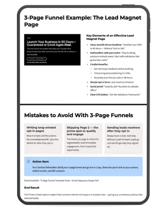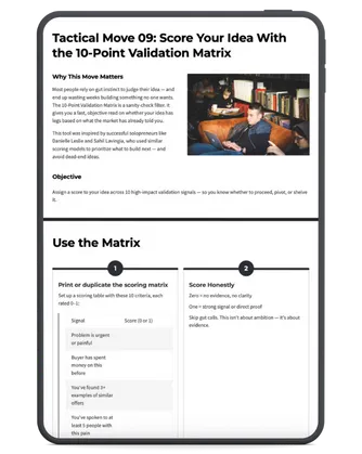 Lean Validation Playbook: You’ll learn how to test your idea fast, pre-sell before you build, and avoid wasting time on products no one wants.